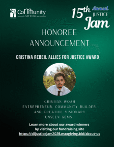 Community Lawyers, Inc. is celebrating 20 years of service this year! While distance made our grassroots work challenging over the last few years, we overcame it by implementing new strategies to create access to affordable legal services for low and moderate income individuals who might otherwise not qualify for legal aid. Proceeds from our fundraiser will support the organization’s weekly legal clinics, internship program, and allow CLI to expand its programming to support community led organizing, engagement and participation in the legal system.